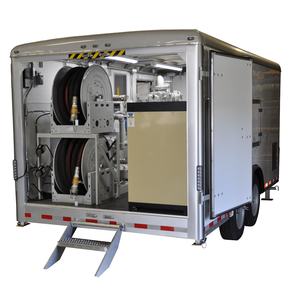 The SES441 filtration trailers are commonly combined with stand-alone vacuum (SES420) and dry breathing air packages (SES329) to increase the versatility of the maintenance trailer. All systems can be custom built to customer specifications.