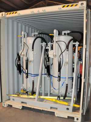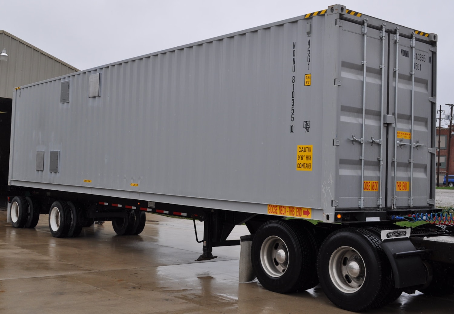 Equipment can be permanently or temporarily packaged in standard ISO shipping containers to facilitate ocean transportation. Containers are available in standard lengths. If the equipment is permanently mounted, non-standard access doors and other openings must be installed at the destination. Installation design and material kits are provided. On land the containerized equipment is transported using standard ISO container chassis built to meet the local highway standards of the destination country.